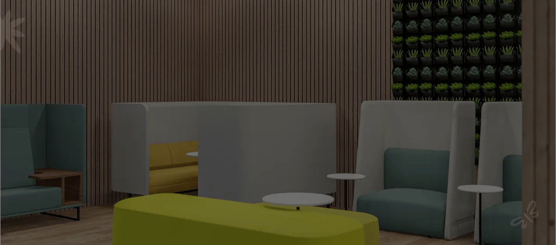 Unlimited use of co-working lounge space. Booths, high back chairs, countertops and sofas.