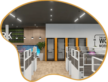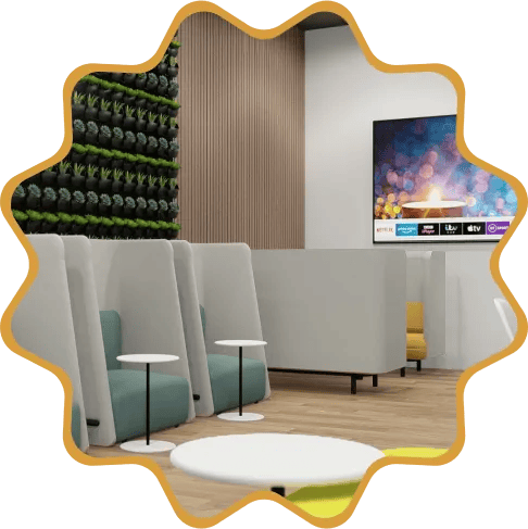 Private high-wall offices & soundproof privacy pods.